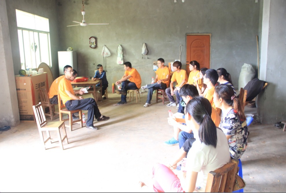 出发前,志愿者们召开了一次紧急会议,共同商议如何更好地开展实践活动。最后确定的方案是:要为老人带来欢笑,减轻老人的劳动负担,关心老人的精神生活。