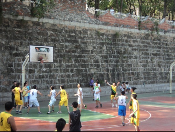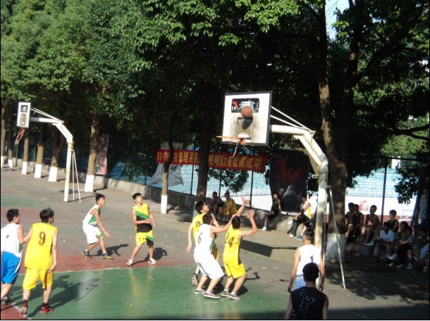 2012年5月30日下午4:30,篮球比赛决赛如火如荼地展开,球员在球场上顽强拼搏,力争上游,他们团结奋进的精神感动了在场的每一个人,他们用自己的激情与汗水传达着对运动,对生活的热爱,传达着班级的友爱互助的团队精神。