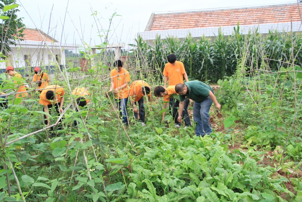 今天的主要工作内容是清除菜地的杂草、道路清扫以及室内保洁。经过简单的分工后,活动开始了。志愿者服务队的同学们奋战在各个角落,不让任何一个卫生死角被遗漏。
