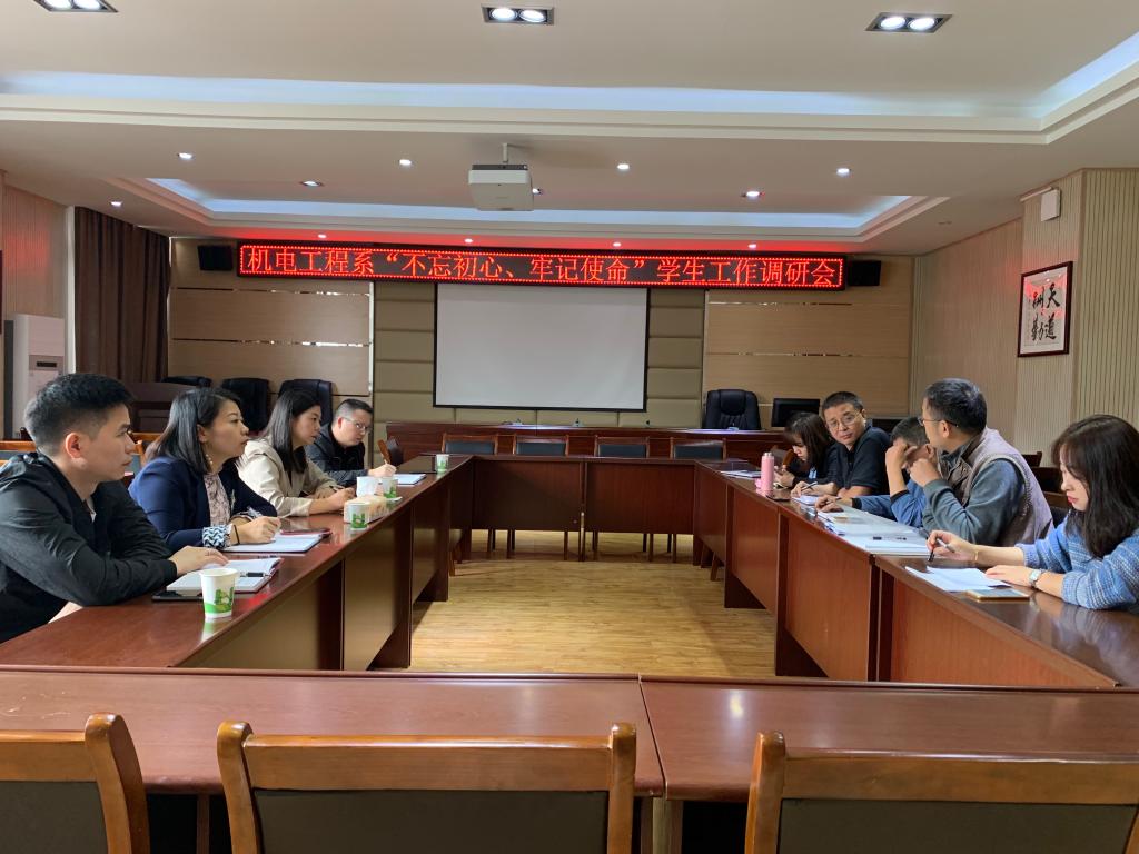 按照“不忘初心、牢记使命”主题教育活动的安排,2019年10月11日在机电工程系会议室开展了“不忘初心、牢记使命”员工工作调研会。机电工程系党总支书记王建平主持了此次会议。