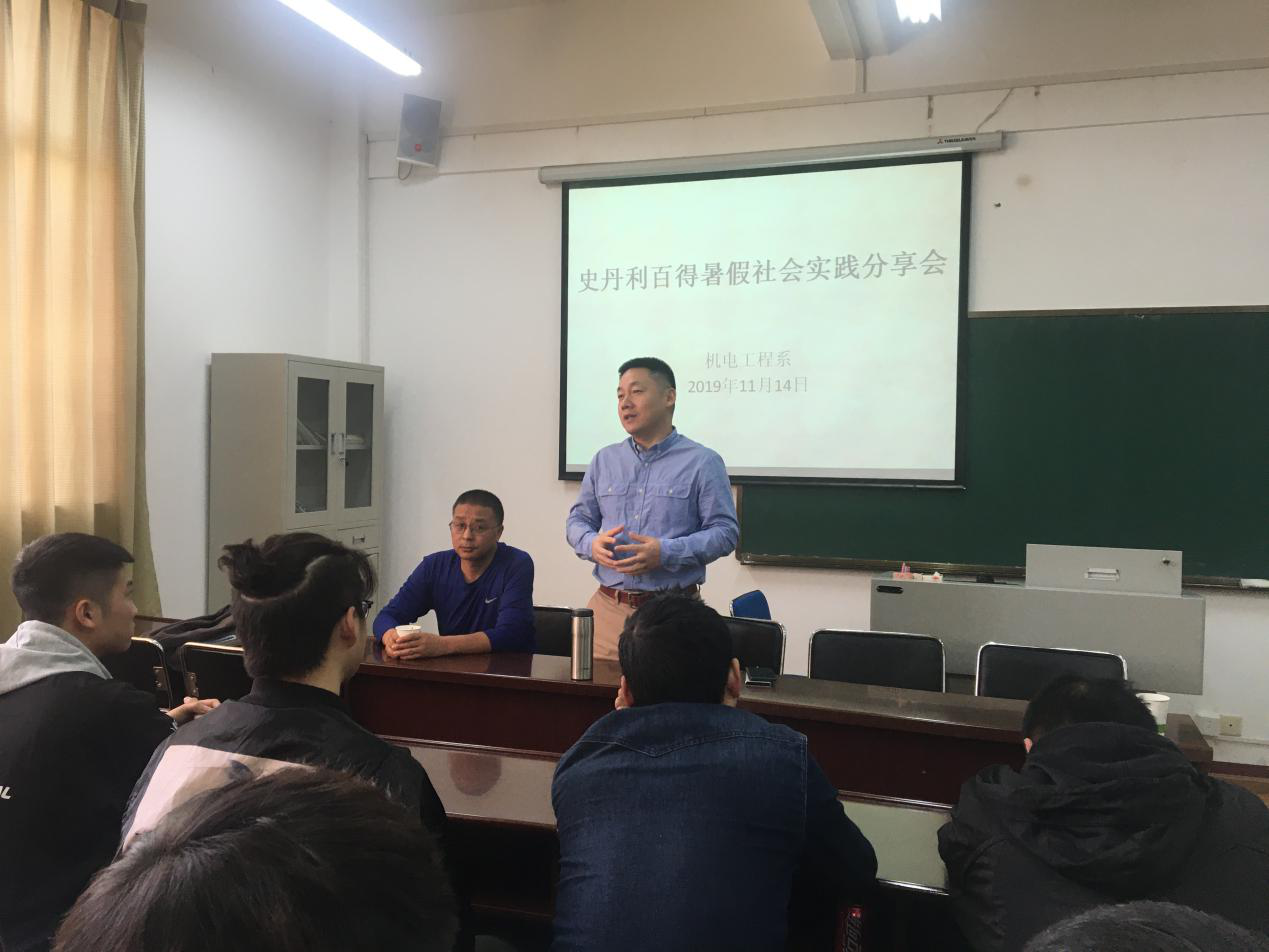 11月14日中午,我系参加史丹利百得暑假社会实践的同学在精业楼304教室进行了一场分享会,此次分享会参加人员有机电工程系党总支书记王建平、史丹利百得人力资源部李青山经理、辅导员孙薇、熊超有以及相关40多位员工。