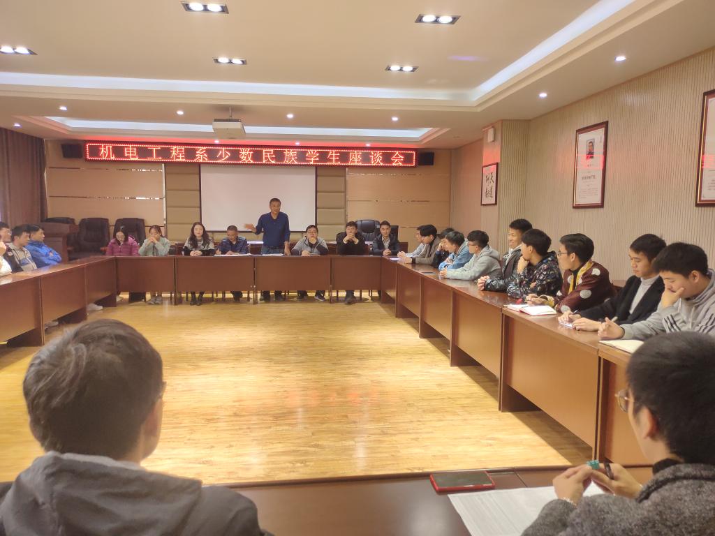 2019年11月22日中午,机电工程系在系会议室召开少数民族员工座谈会,在校少数民族员工、系党总支书记、员工干事、部分辅导员老师参加了座谈会。