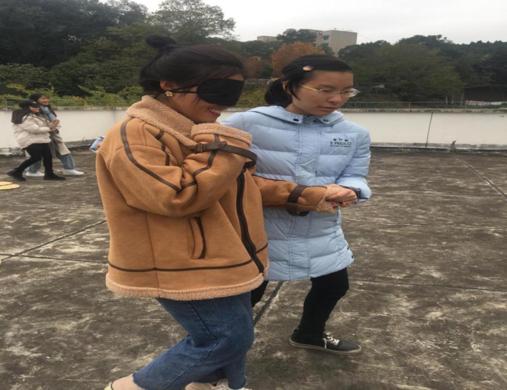 本次团辅由机电工程系心理老师孙薇主持,两系心理部干事统一组织策划。本次活动将大家随机分为两组,共同进行了四项活动。活动内容有:坐地起身、冬日暖心、盲人越障、人际矛盾情景剧。这些活动主要从人际沟通、团队合作、寝室矛盾问题解决等方面对同学们进行了专项辅导。