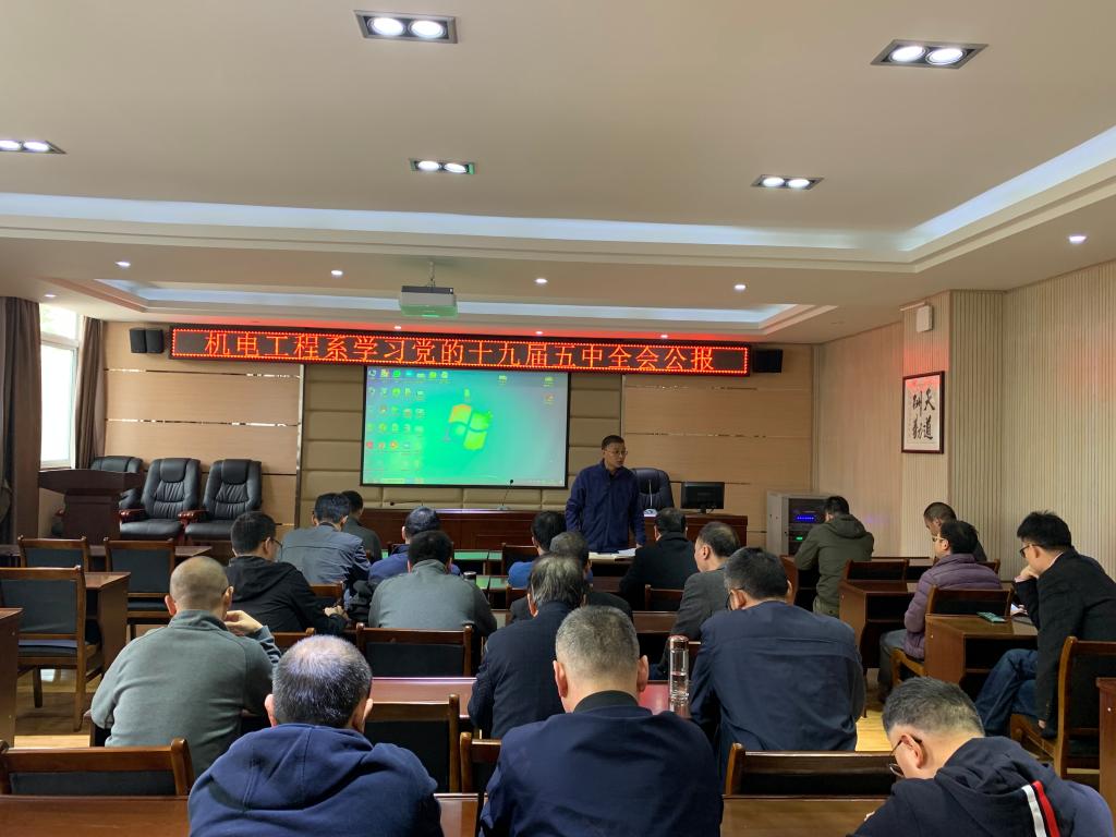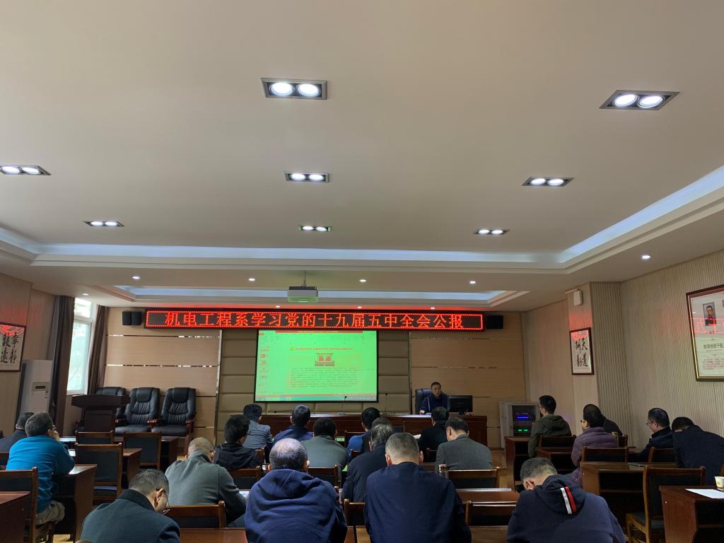 11月18日14:30,机电工程系组织学习《中国共产党第十九届中央委员会第五次全体会议公报》等内容,系党总支书记王建平主持会议。