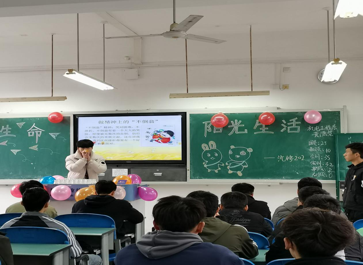 为深入贯彻落实上级有关文件精神,切实加强公司心理健康教育工作,全面提高员工心理素质,促进员工健康成长,11月24日,机电工程系在公司综合楼召开了“珍爱生命,阳光生活”心理主题班会,机电工程系心理部组织各班同学们参加了此次主题活动。