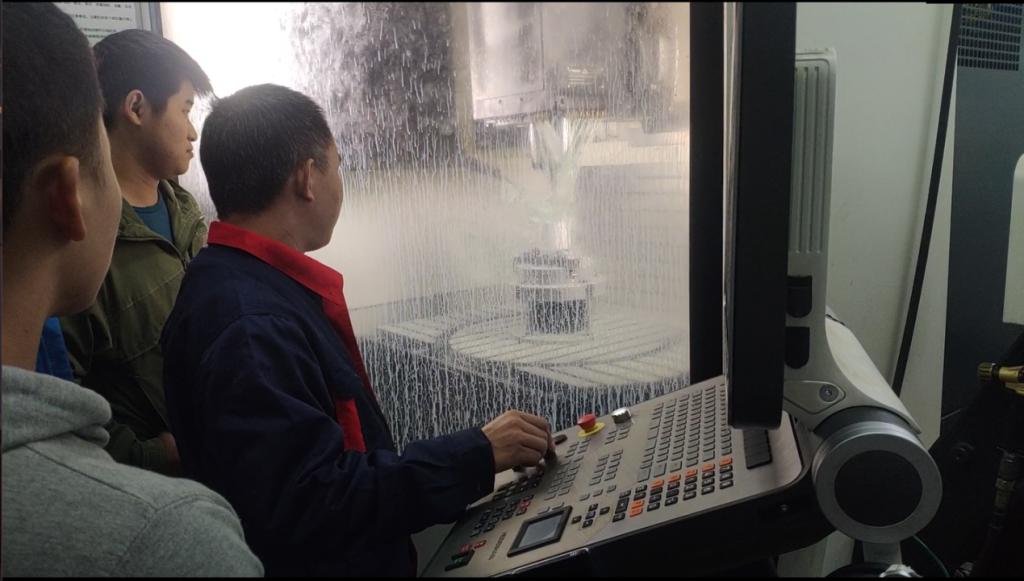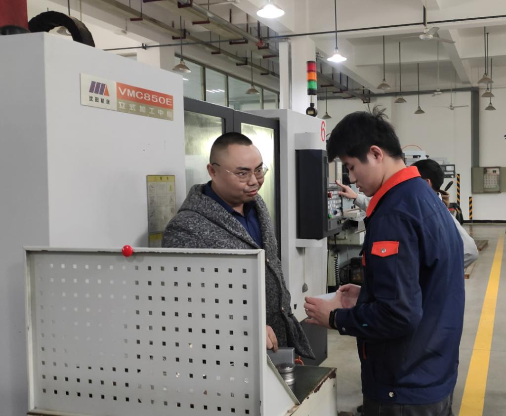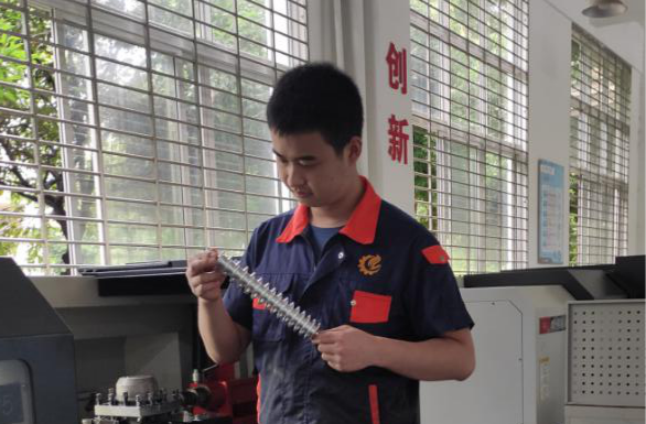 在学习技术的同时,响应国家产教融合的号召,结合生产实际,社团同学在技术上不断探索。社团蒋孟林、赵阳、孙传学等同学,解决了复杂叶轮的五轴联动铣削的技术问题,并成功制成样件。2018级社团会长曹华清同学,带领2019级陈启明等同学解决了曲线牙形变螺距螺纹零件车削的技术问题。张雨龙、刘勇、陈启明等同学协助社团指导老师姜老师试制成功螺纹二次装夹定位器,解决了螺纹零件高效率二次装夹再加工的技术问题。